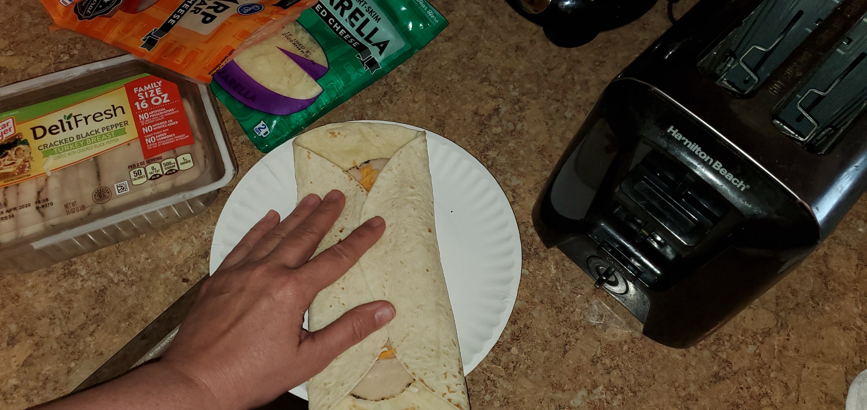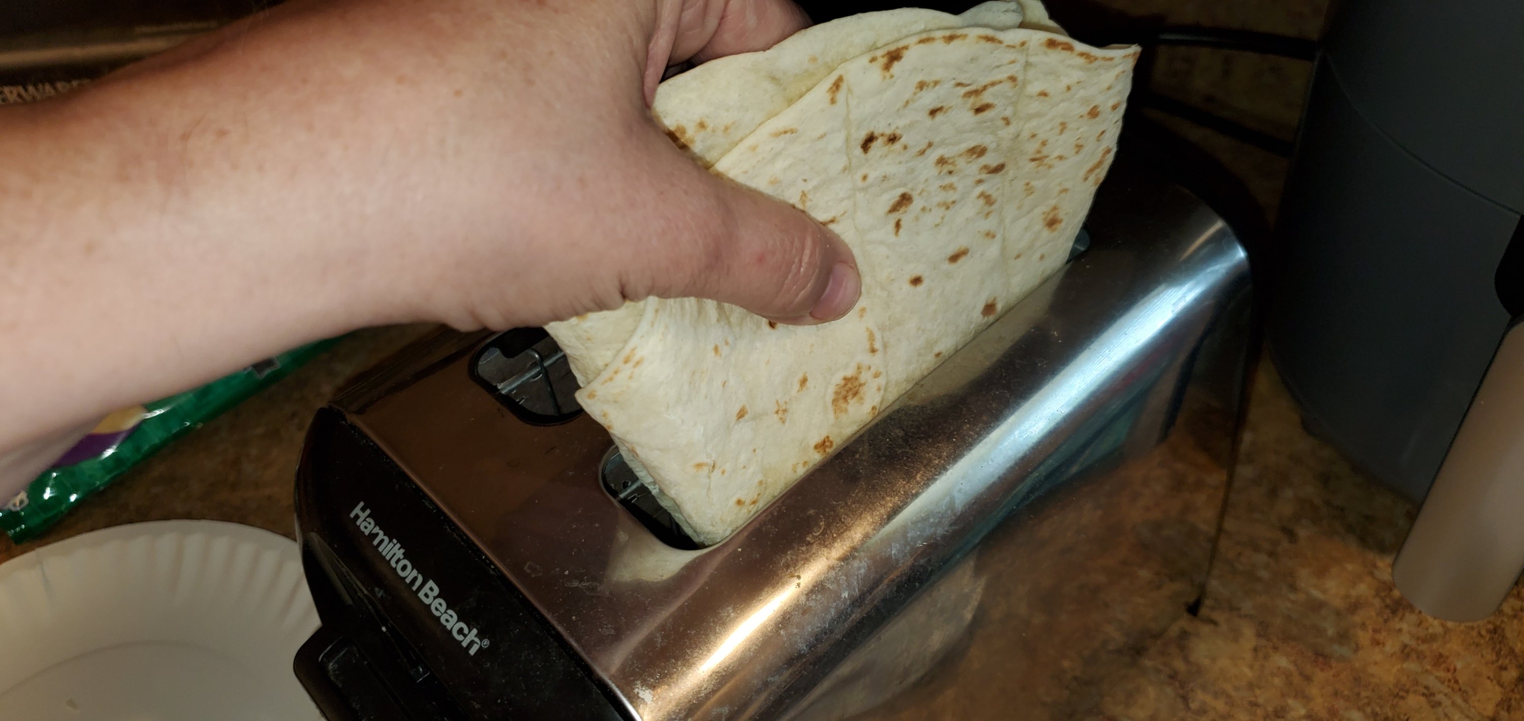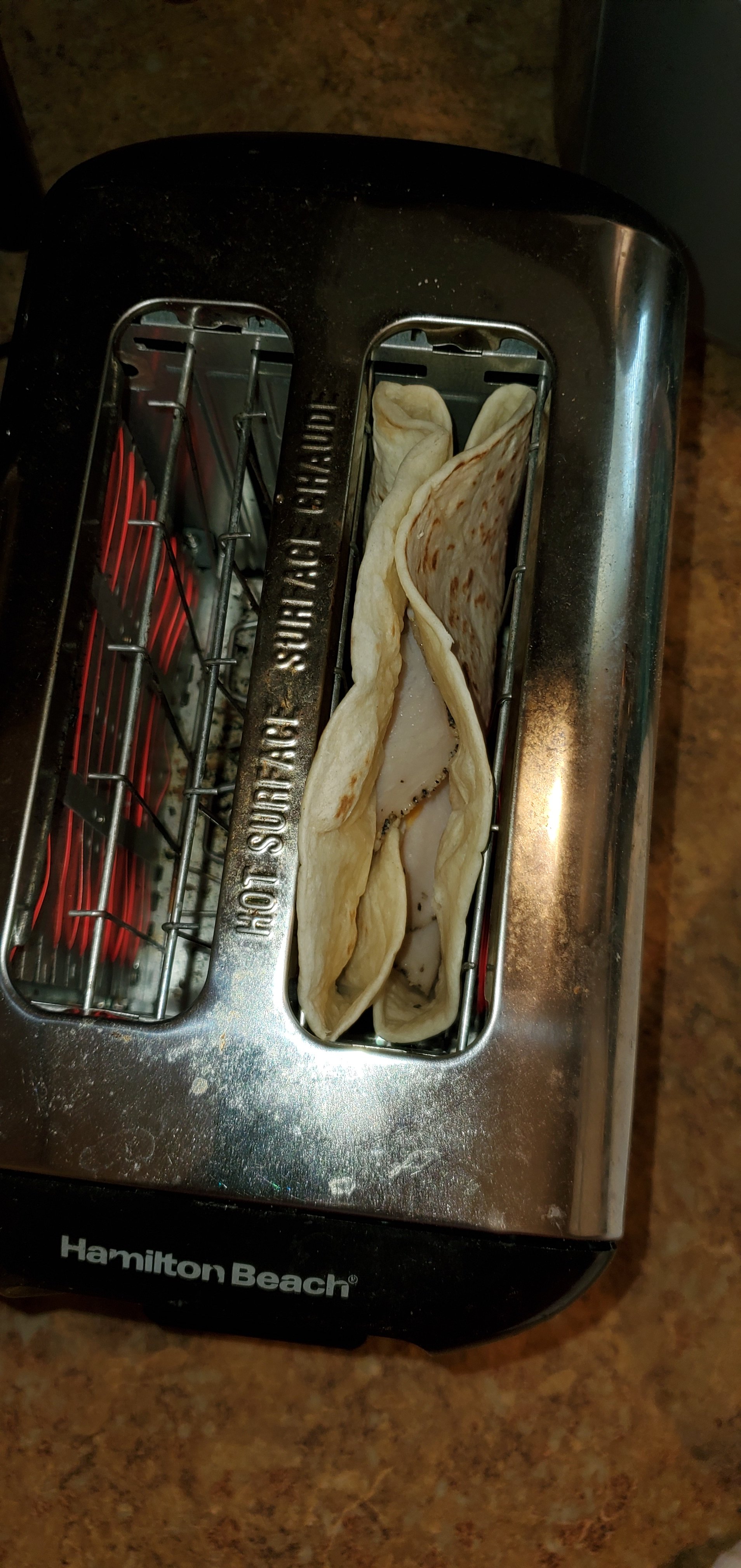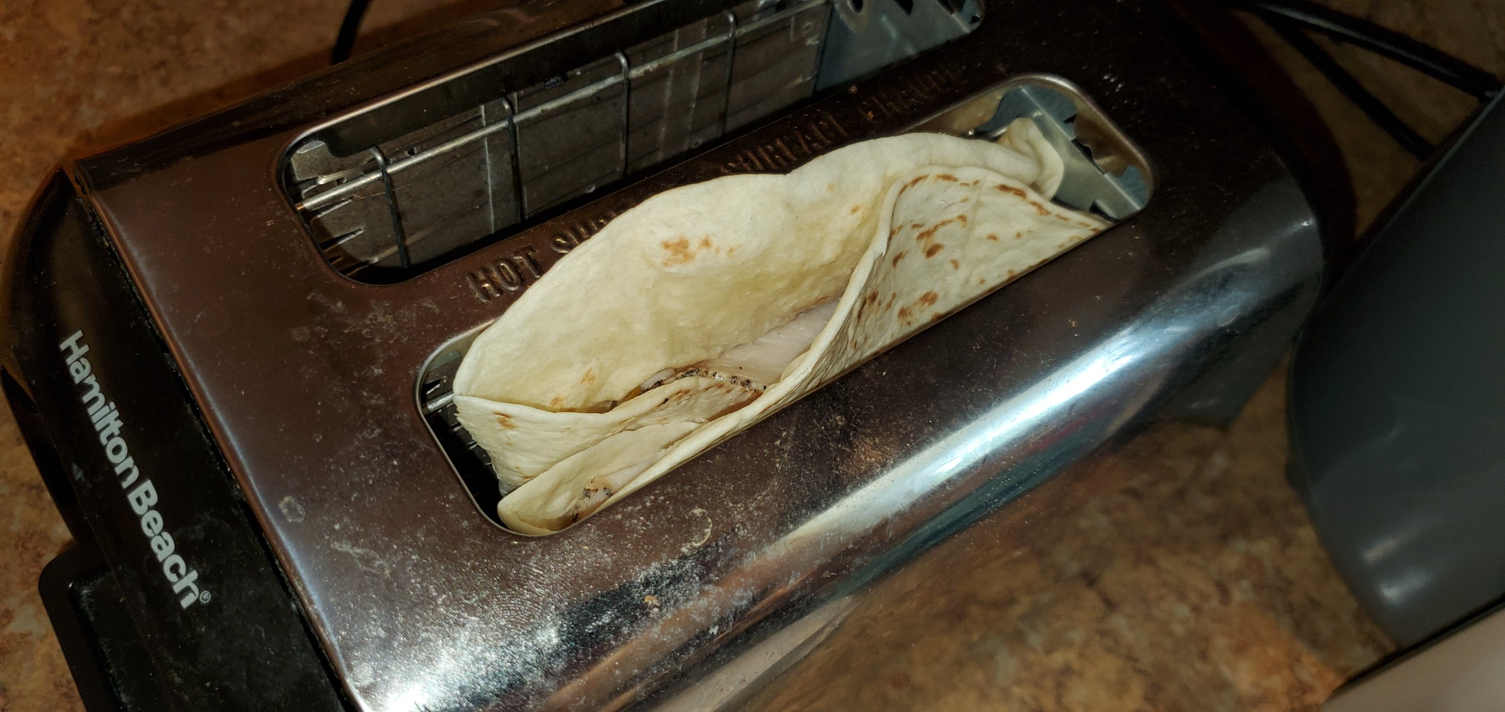 This second picture of the thing in the toaster is because one ride did not make a quesadilla. It made a warmish wrap.